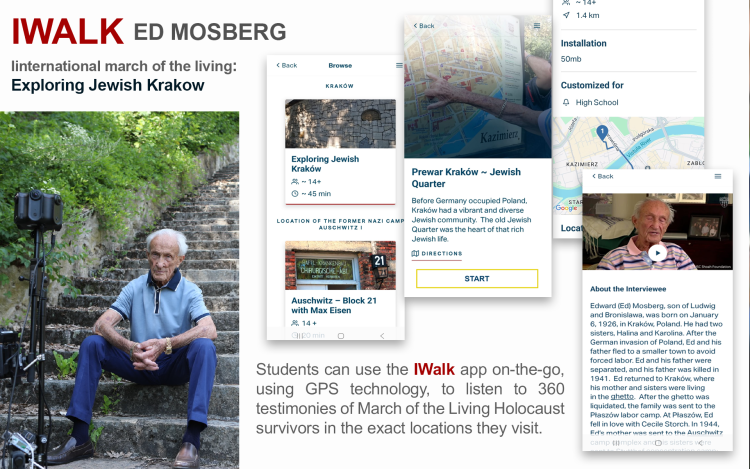 IWALK is an interactive app utilizing testimonies shot in 360 with March of the Living Holocaust survivors in the very locations where their Holocaust stories transpired. Using GPS technology, students can use the app “on the go” to locate and listen to testimonies of March of the Living Holocaust survivors filmed in the very locations where the students are now visiting.